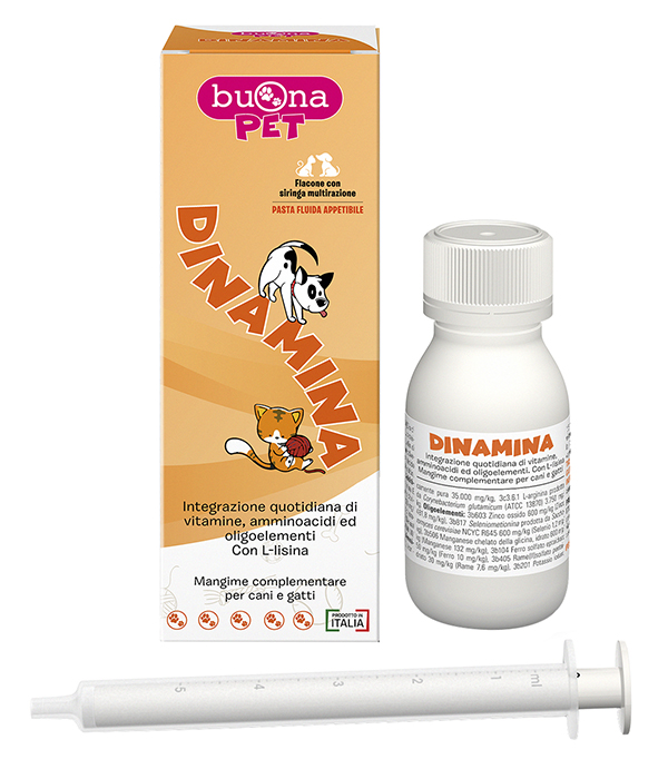 Integrazione quotidiana di vitamine, amminoacidi ed oligoelementi. Contiene L-lisina, complesso vitaminico, amminoacidi ed oligoelementi essenziali, formulato in pasta fluida appetibile per una quotidiana integrazione di tali elementi. L’utilizzo della siringa dosatrice consente un’accurata e facile somministrazione.