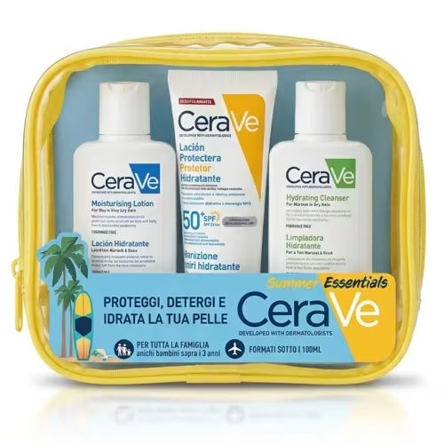 CeraVe Pochette Solare è un kit completo ideale per la routine quotidiana di detersione, idratazione e protezione della pelle.