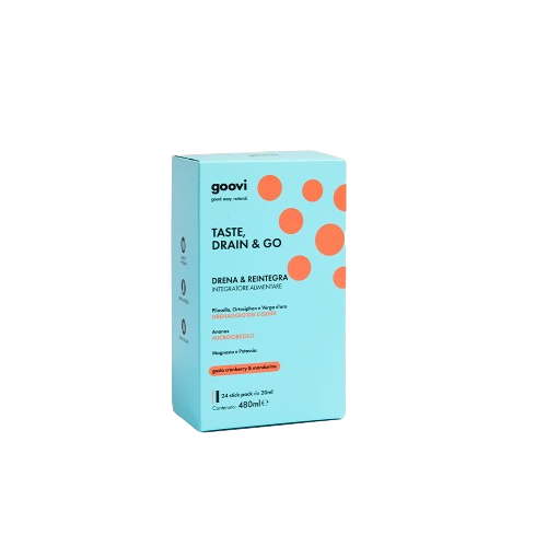 Goovi Drenante Cranberry & Mandarino è un integratore alimentare drenante, disponibile in pratici stick pack monouso, ideale da portare sempre con te. Grazie alla sua formulazione innovativa a base di estratti vegetali, tra cui Ananas, Pilosella, Ortosiphon e Verga d’oro, questo prodotto favorisce il drenaggio dei liquidi corporei e il microcircolo.