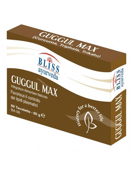 GUGGUL MAX Descrizione Integratore alimentare prodotto con piante dell’antica tradizione ayurvedica. Commiphora mukul: metabolismo dei lipidi, equilibrio del peso corporeo. Phyllanthus emblica: metabolismo dei carboidrati, antiossidante. Terminalia belerica: metabolismo dei lipidi. Ingredienti Caratteristiche nutrizionali