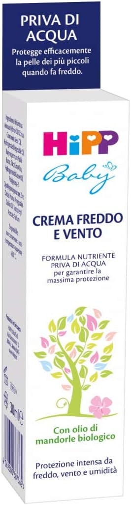 Crema freddo e vento HiPP Baby, l’ideale per il viso e le manine del bambino, ma anche per la pelle stressata degli adulti. Priva di acqua, per garantire la massima protezione