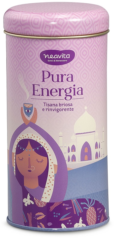 Barattolo in latta con 90 grammi di Tisana Pura Energia.