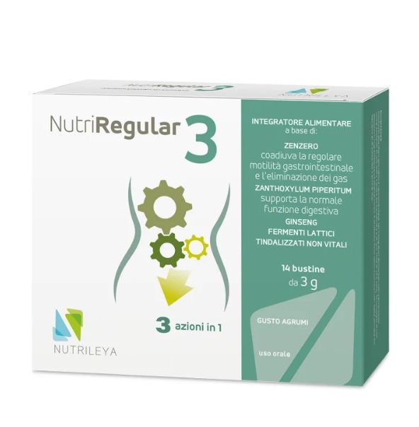 Nutriregular 3 è un integratore alimentare a base di Zenzero, Zanthoxylum piperitum, Ginseng e una miscela di probiotici tindalizzati non vitali, che combina tre efficaci azioni in un unico prodotto per offrire un’esperienza di benessere completa per il tuo tratto gastrointestinale.