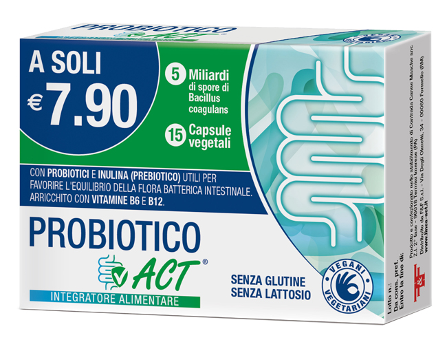 Probiotico ACT Bacillus Coagulans 5 Miliardi Inulina Vitamine B 15 Capsule