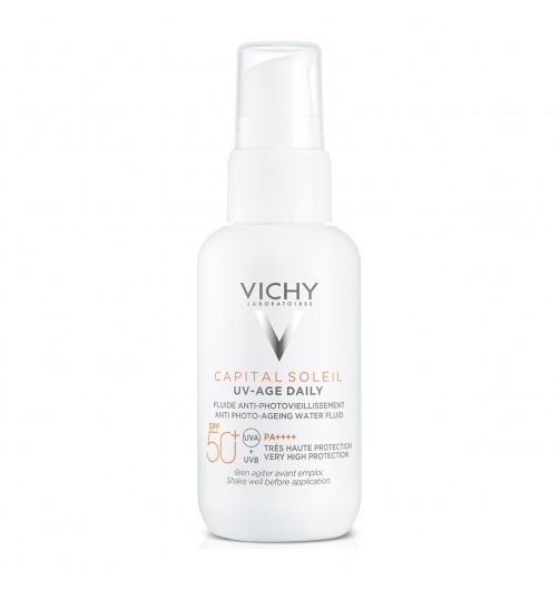 UV-AGE DAILY con SPF 50+ offre una protezione molto alta contro i raggi UVA, UVB e luce visibile per prevenire la comparsa di rughe e macchie scure.